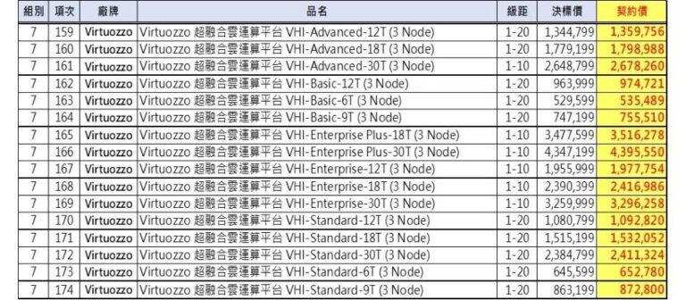 「Virtuozzo VHI (Virtuozzo Hybrid Infrastructure)於軟體共同供應契約-電腦軟體(1130201)標順利決標上架」